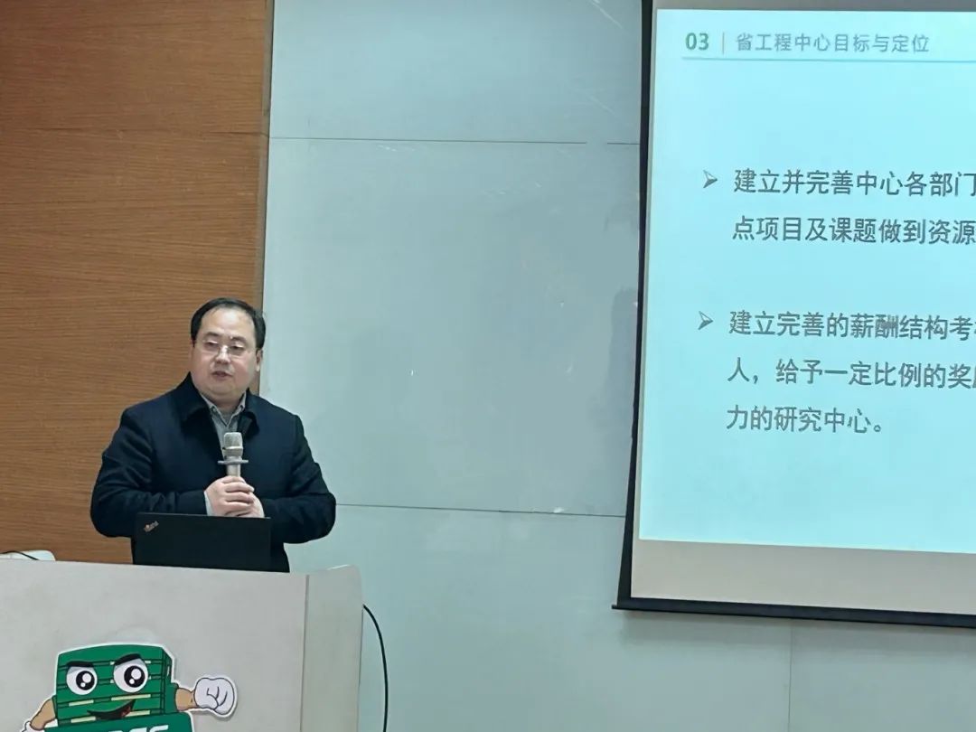 會上,研究中心主任周總就江蘇省綠色智能包裝工程技術研究中心的基本情況及后續的目標與定位、團隊建設及人才培養、主要研究方向及任務考核做了詳細的介紹