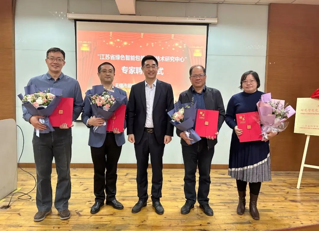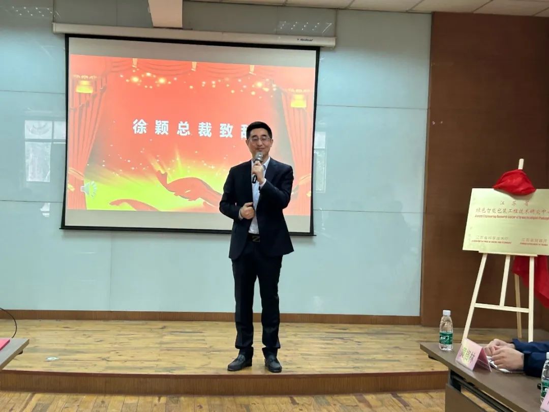 隨后徐穎總經理與行業專家及教授們共同為“江蘇省綠色智能包裝工程技術研究中心”揭牌,并為專家教授團隊及研究中心主要負責人授聘書。