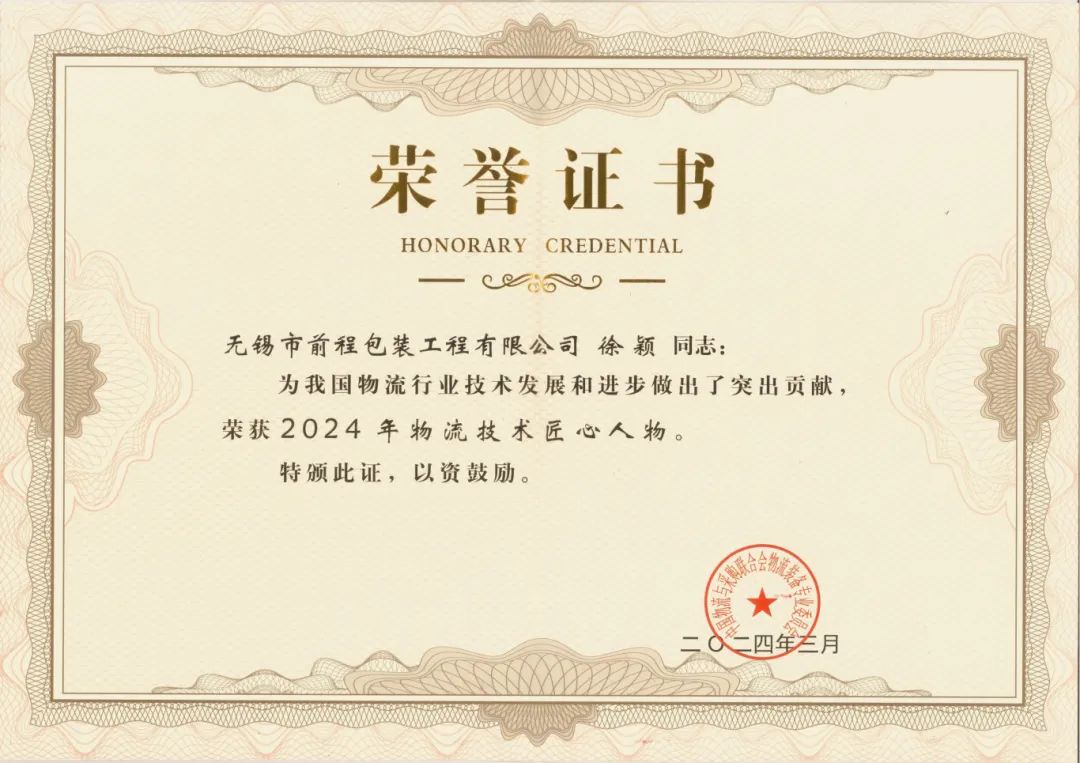 近年來,穎總經理帶領技術研發團隊組建了江蘇省綠色智能包裝工程技術研究中心,并成功通過省級工程技術研究中心認定,對我國綠色智能包裝技術及企業創新發展注入新動力。通過開發新的代木材料,幫助客戶努力降低包裝成本,為客戶創造價值,為減少林業資源消耗及其他包裝原材料行業的可持續發展作出了積極的努力;通過推進循環包裝及減量化,為新能源、成套裝備、高端醫療器械等新興產業助力。公司獲得“創新示范領軍企業”、江蘇省“專精特新”企業等多項榮譽稱號,也收獲了眾多客戶的認可和信任。此次,徐穎總經理榮獲”物流技術匠心獎”亦是行業對前程公司不斷創新、穩健發展的高度肯定。